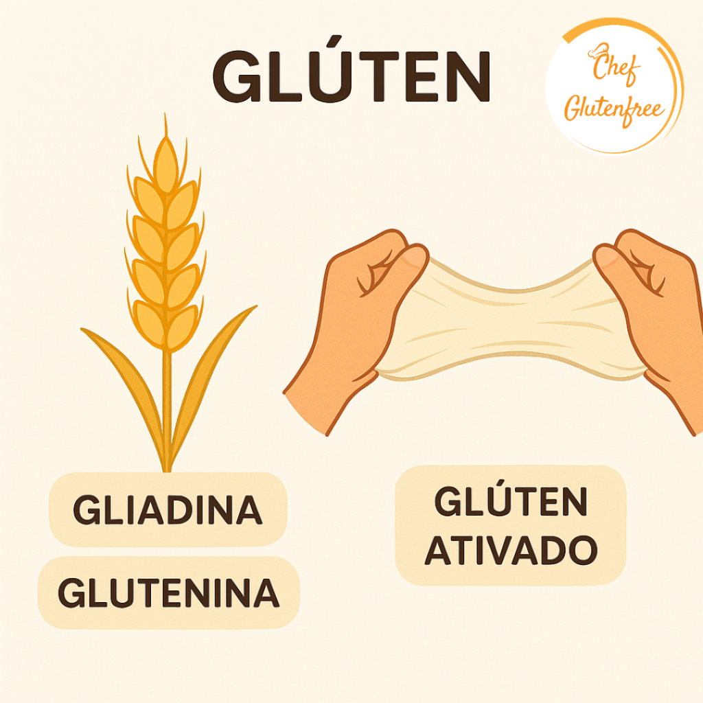 O glúten é uma proteína encontrada em alguns cereais como trigo, cevada e centeio. O glúten é formado a partir da adição de água e de uma força mecânica. Ele age como uma cola, dando elasticidade à massa do pão e outras preparações. Imagine como um elástico que permite que a massa se estique e mantenha sua forma.